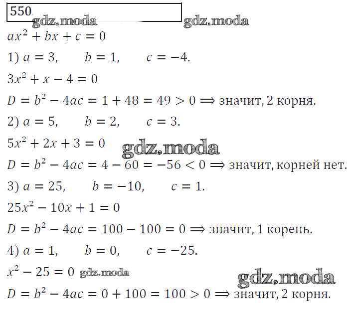 ОТВЕТ на задание № 550 Учебник по Алгебре 8 класс Колягин УМК