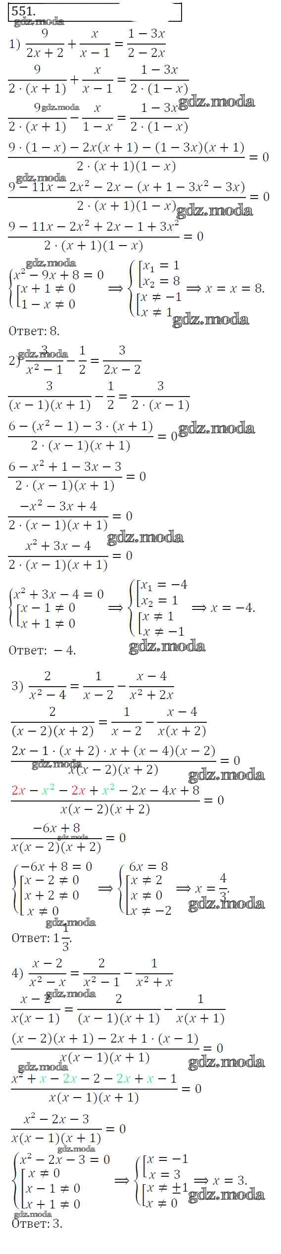 ГДЗ решение к заданию № 551 Алгебра 8 класс Колягин Ю.М. Просвещение 2013 ФГОС бесплатно на гдз.мода!