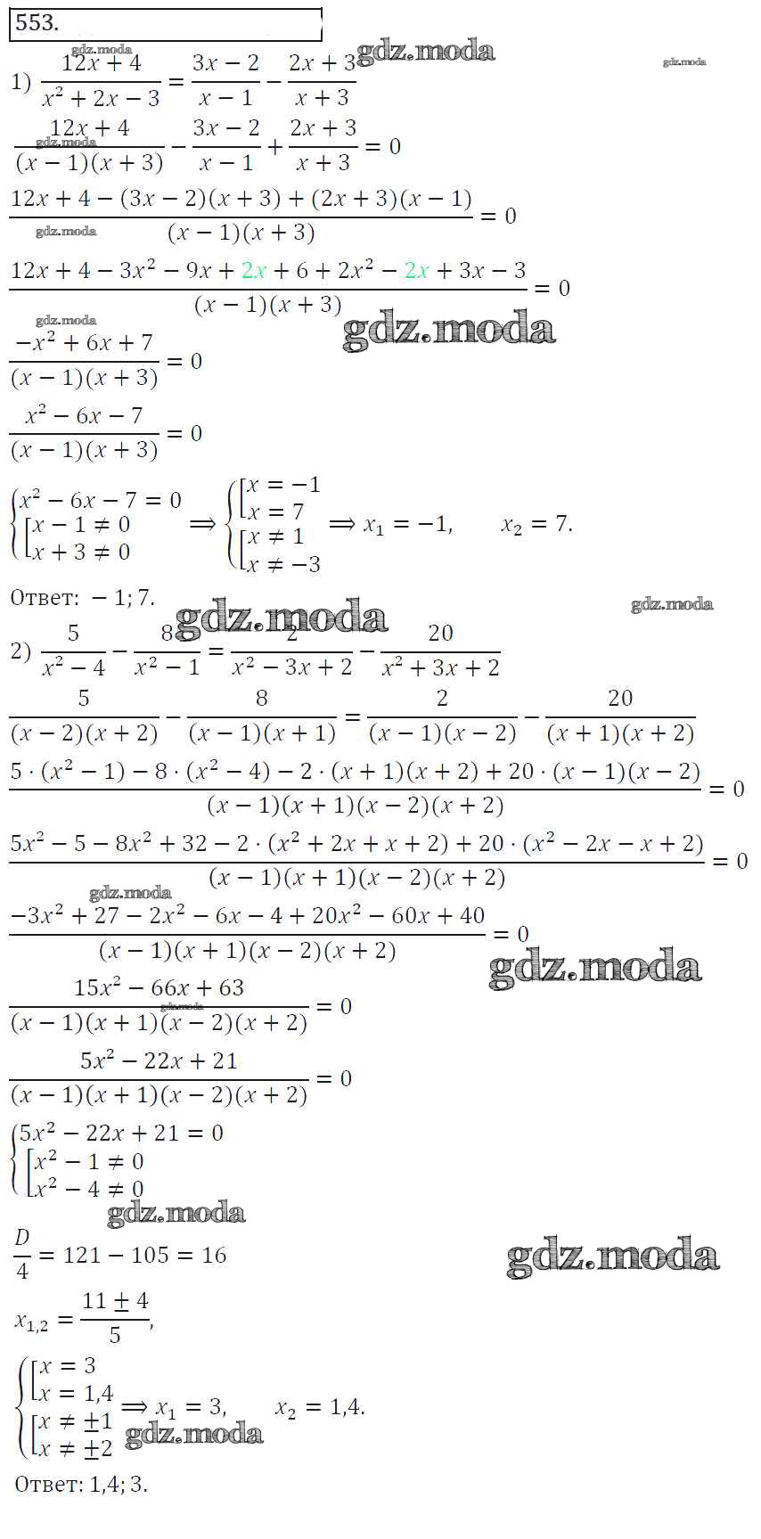 ГДЗ решение к заданию № 553 Алгебра 8 класс Колягин Ю.М. Просвещение 2013 ФГОС бесплатно на гдз.мода!