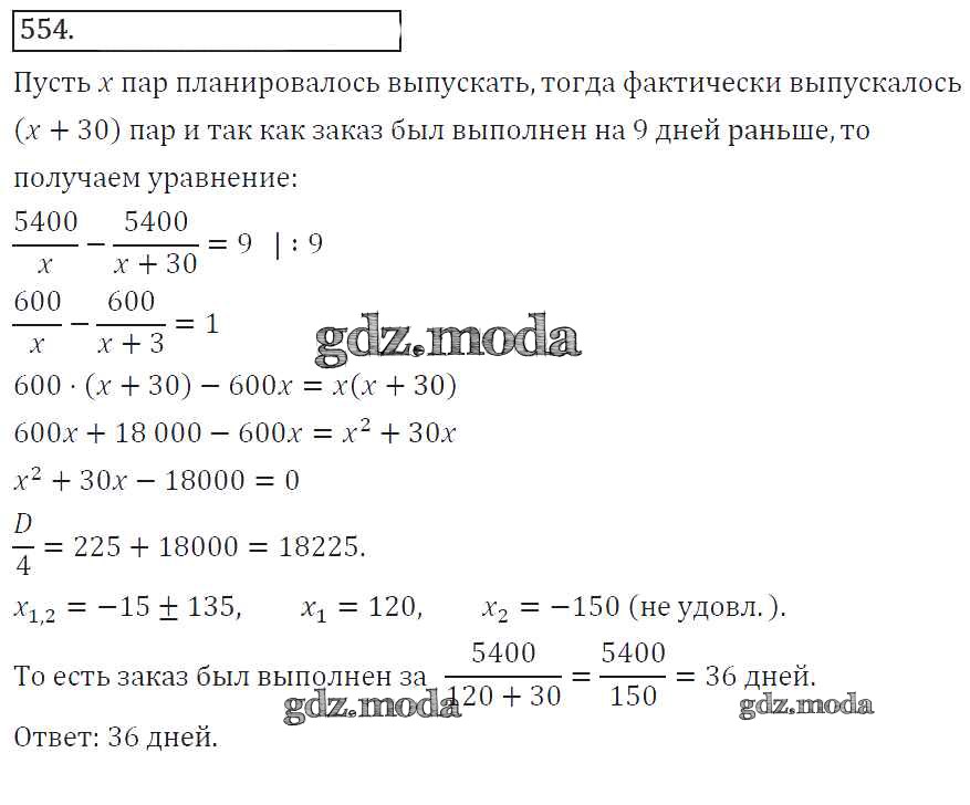 ГДЗ решение к заданию № 554 Алгебра 8 класс Колягин Ю.М. Просвещение 2013 ФГОС бесплатно на гдз.мода!