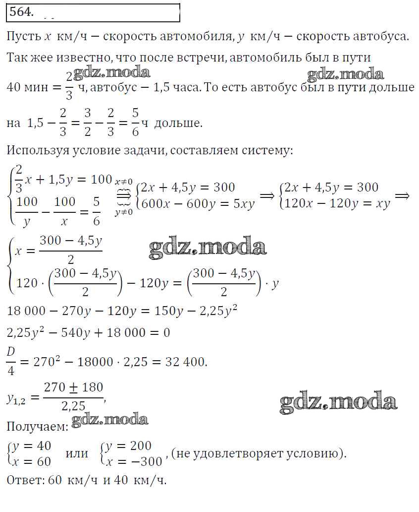 ГДЗ решение к заданию № 564 Алгебра 8 класс Колягин Ю.М. Просвещение 2013 ФГОС бесплатно на гдз.мода!