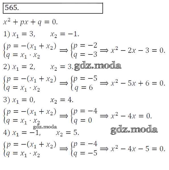 ОТВЕТ на задание № 565 Учебник по Алгебре 8 класс Колягин УМК