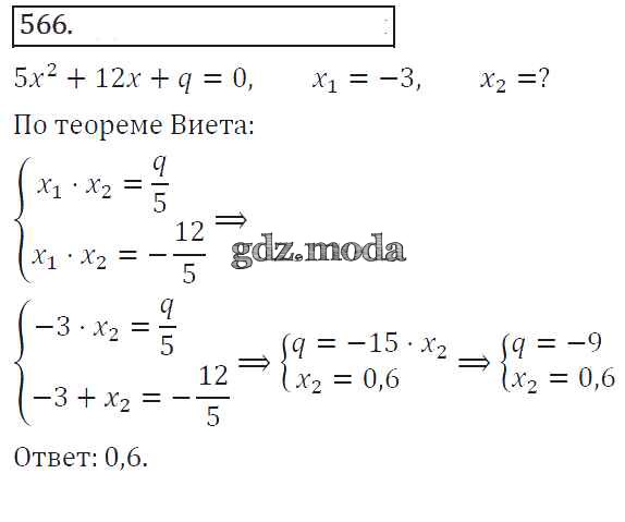ОТВЕТ на задание № 566 Учебник по Алгебре 8 класс Колягин УМК