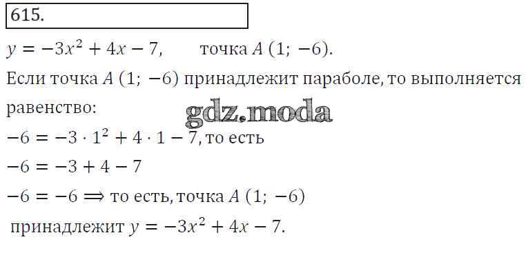 ОТВЕТ на задание № 615 Учебник по Алгебре 8 класс Колягин УМК