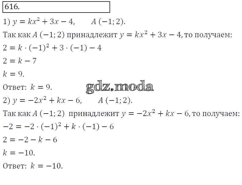 ОТВЕТ на задание № 616 Учебник по Алгебре 8 класс Колягин УМК