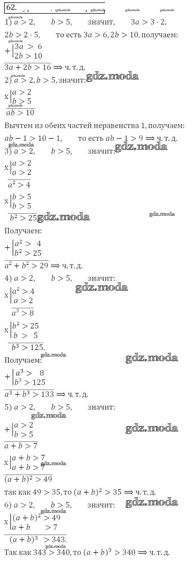 ГДЗ решение к заданию № 62 Алгебра 8 класс Колягин Ю.М. Просвещение 2013 ФГОС бесплатно на гдз.мода!