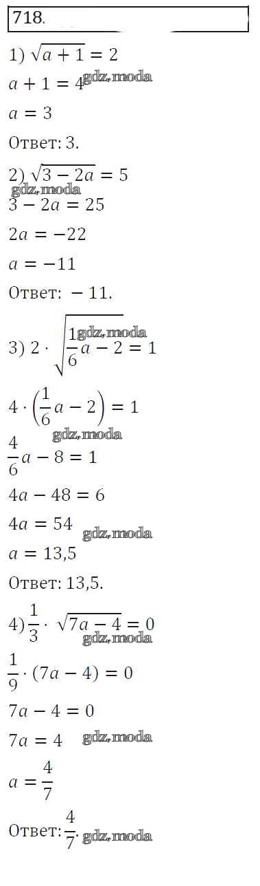 ГДЗ решение к заданию № 718 Алгебра 8 класс Колягин Ю.М. Просвещение 2013 ФГОС бесплатно на гдз.мода!