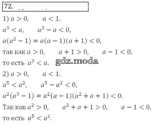 ГДЗ решение к заданию № 72 Алгебра 8 класс Колягин Ю.М. Просвещение 2013 ФГОС бесплатно на гдз.мода!