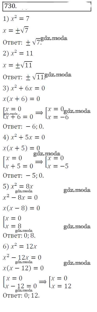 ГДЗ решение к заданию № 730 Алгебра 8 класс Колягин Ю.М. Просвещение 2013 ФГОС бесплатно на гдз.мода!