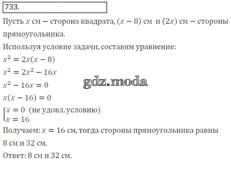 ГДЗ решение к заданию № 733 Алгебра 8 класс Колягин Ю.М. Просвещение 2013 ФГОС бесплатно на гдз.мода!
