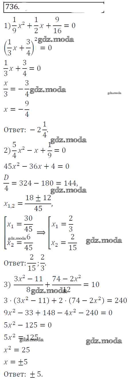 ГДЗ решение к заданию № 736 Алгебра 8 класс Колягин Ю.М. Просвещение 2013 ФГОС бесплатно на гдз.мода!