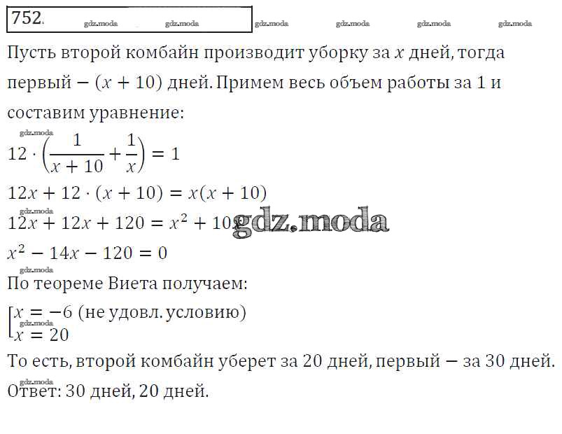 ГДЗ решение к заданию № 752 Алгебра 8 класс Колягин Ю.М. Просвещение 2013 ФГОС бесплатно на гдз.мода!