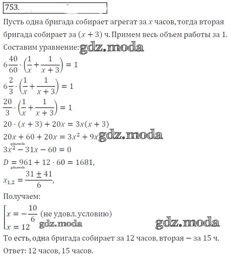 ГДЗ решение к заданию № 753 Алгебра 8 класс Колягин Ю.М. Просвещение 2013 ФГОС бесплатно на гдз.мода!