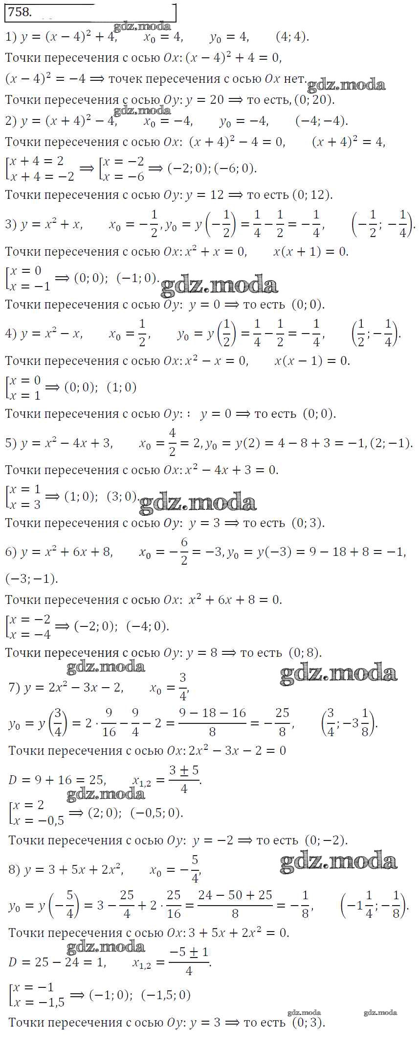 ГДЗ решение к заданию № 758 Алгебра 8 класс Колягин Ю.М. Просвещение 2013 ФГОС бесплатно на гдз.мода!
