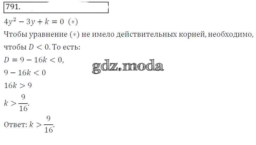 ОТВЕТ на задание № 791 Учебник по Алгебре 8 класс Колягин УМК