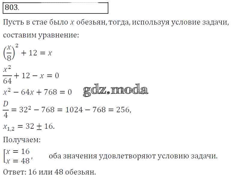 ГДЗ решение к заданию № 803 Алгебра 8 класс Колягин Ю.М. Просвещение 2013 ФГОС бесплатно на гдз.мода!