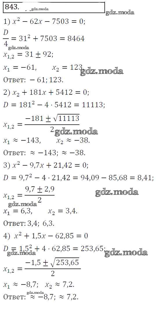 ГДЗ решение к заданию № 843 Алгебра 8 класс Колягин Ю.М. Просвещение 2013 ФГОС бесплатно на гдз.мода!