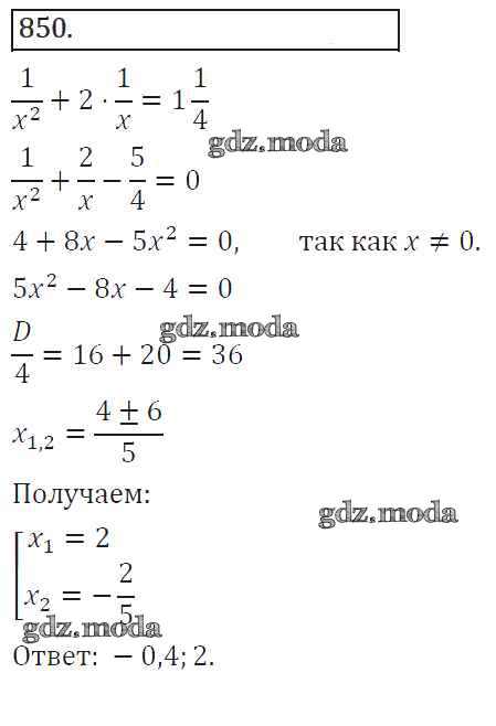 ГДЗ решение к заданию № 850 Алгебра 8 класс Колягин Ю.М. Просвещение 2013 ФГОС бесплатно на гдз.мода!