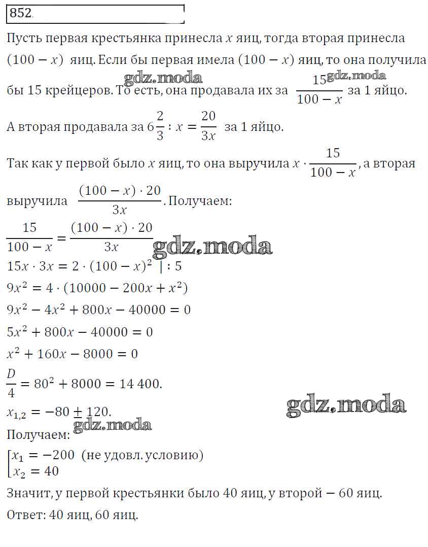 ГДЗ решение к заданию № 852 Алгебра 8 класс Колягин Ю.М. Просвещение 2013 ФГОС бесплатно на гдз.мода!