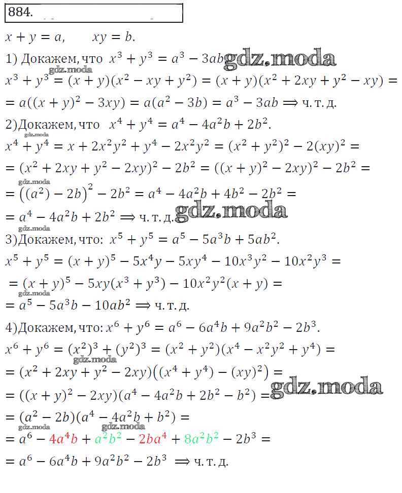 ГДЗ решение к заданию № 884 Алгебра 8 класс Колягин Ю.М. Просвещение 2013 ФГОС бесплатно на гдз.мода!