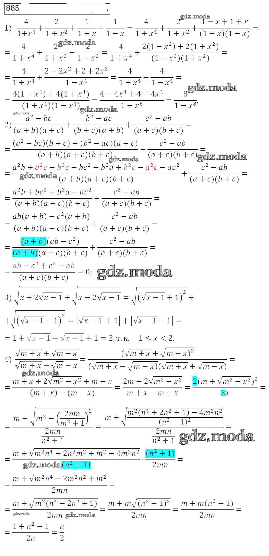 ОТВЕТ на задание № 885 Учебник по Алгебре 8 класс Колягин УМК