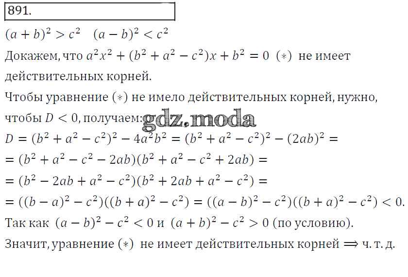 ОТВЕТ на задание № 891 Учебник по Алгебре 8 класс Колягин УМК