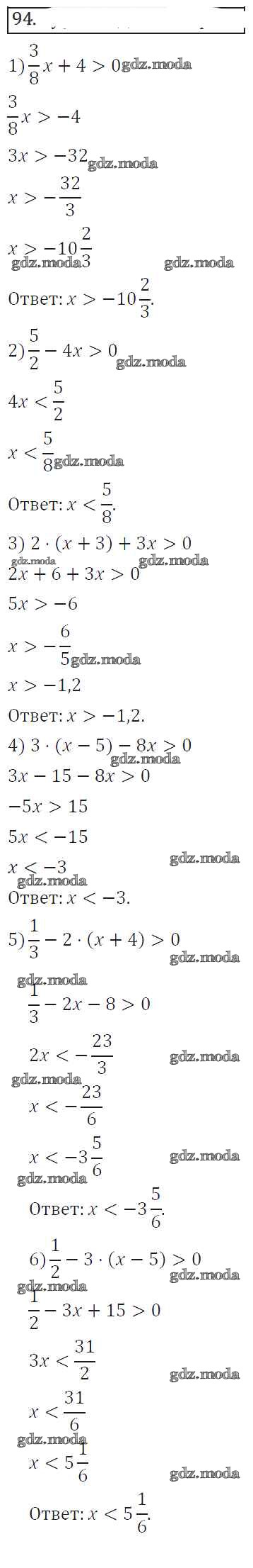 ГДЗ решение к заданию № 94 Алгебра 8 класс Колягин Ю.М. Просвещение 2013 ФГОС бесплатно на гдз.мода!