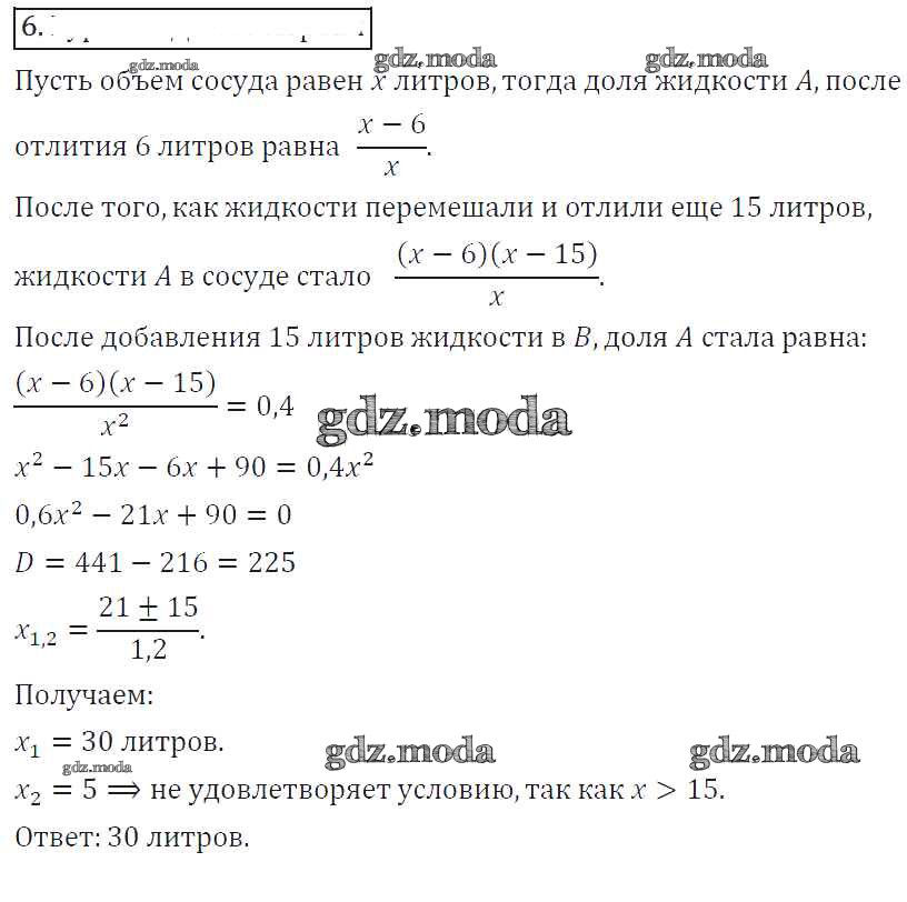ГДЗ решение к заданию № 6 Алгебра 8 класс Колягин Ю.М. Просвещение 2013 ФГОС бесплатно на гдз.мода!