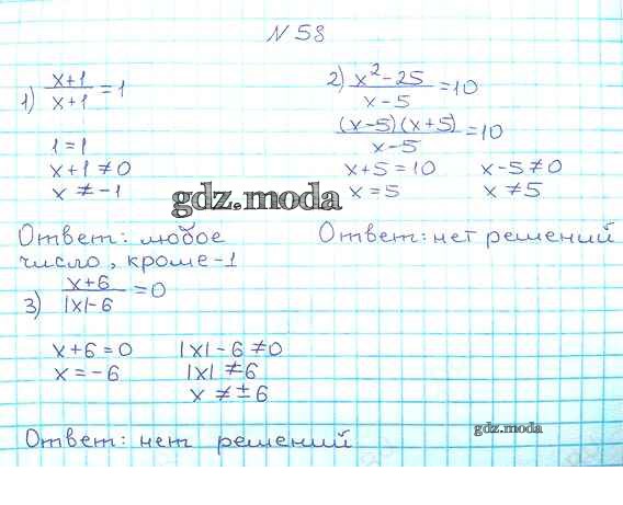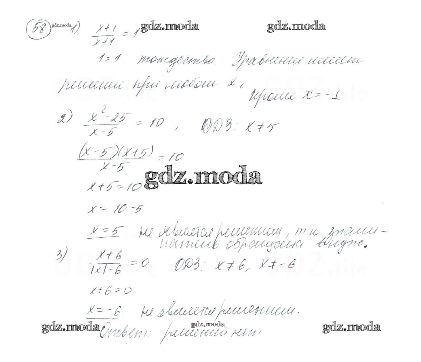 ОТВЕТ на задание № 58 Учебник по Алгебре 8 класс Мерзляк Алгоритм успеха