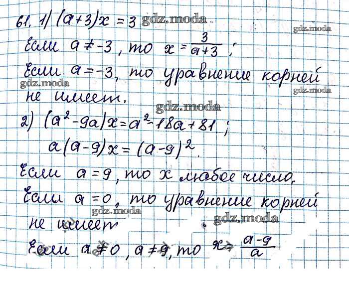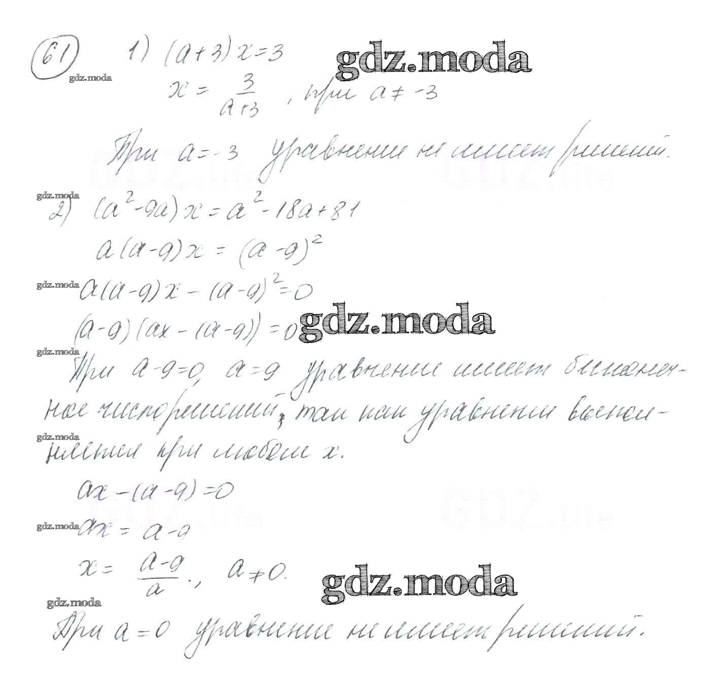 ОТВЕТ на задание № 61 Учебник по Алгебре 8 класс Мерзляк Алгоритм успеха