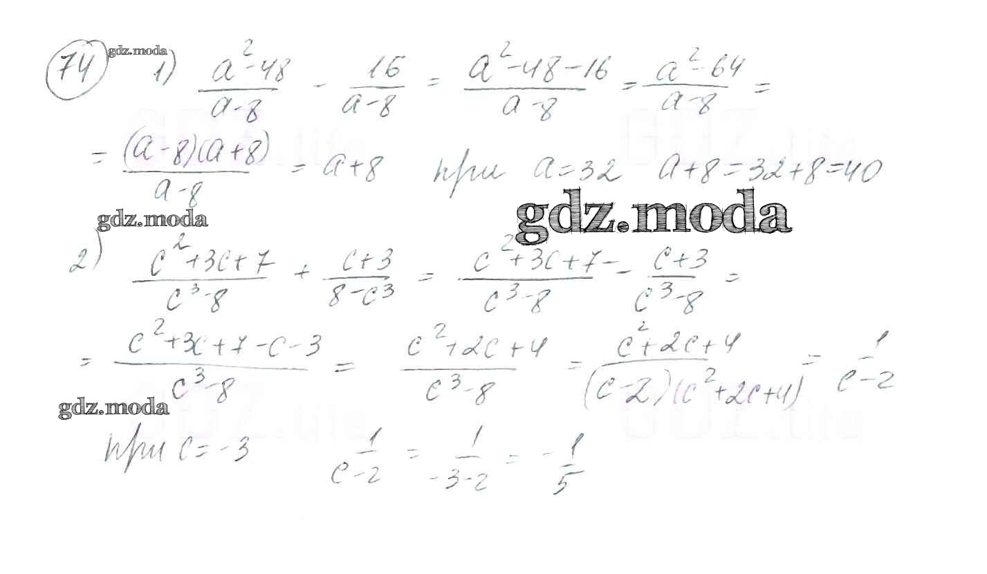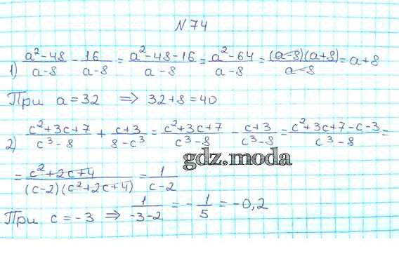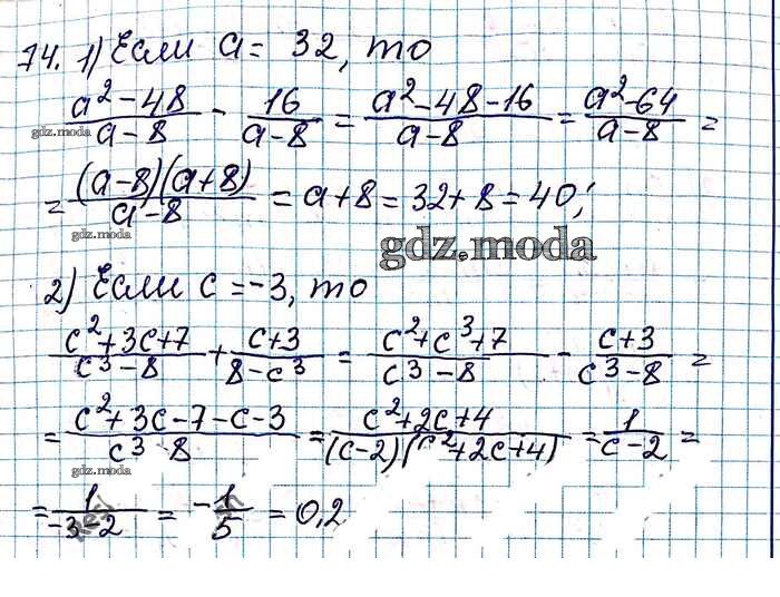 ОТВЕТ на задание № 74 Учебник по Алгебре 8 класс Мерзляк Алгоритм успеха