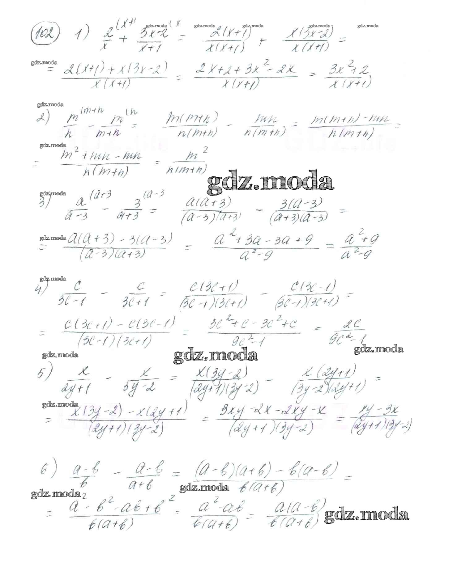 ОТВЕТ на задание № 102 Учебник по Алгебре 8 класс Мерзляк Алгоритм успеха
