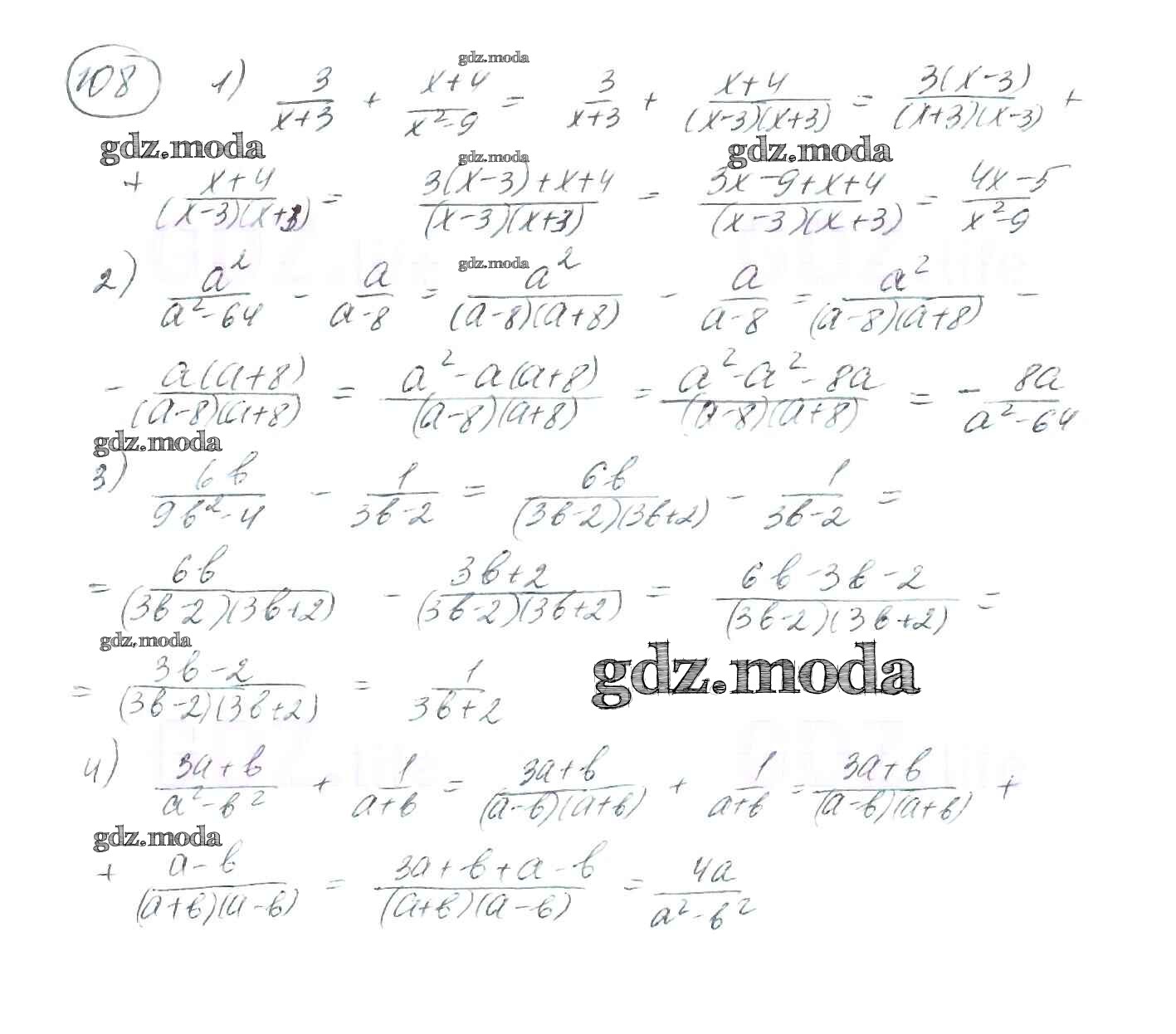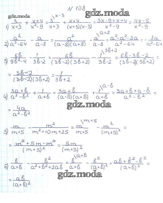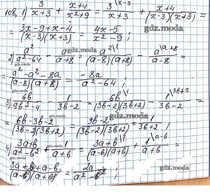 ОТВЕТ на задание № 108 Учебник по Алгебре 8 класс Мерзляк Алгоритм успеха