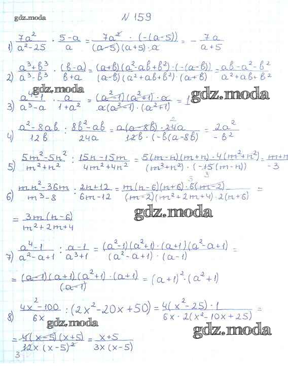 ОТВЕТ на задание № 159 Учебник по Алгебре 8 класс Мерзляк Алгоритм успеха