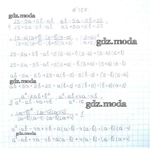 ОТВЕТ на задание № 167 Учебник по Алгебре 8 класс Мерзляк Алгоритм успеха