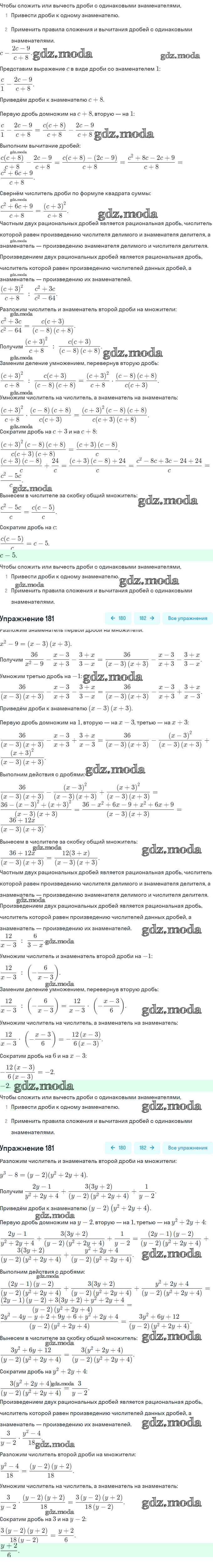 ОТВЕТ на задание № 181 Учебник по Алгебре 8 класс Мерзляк Алгоритм успеха