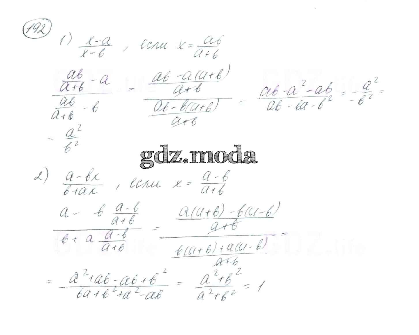ОТВЕТ на задание № 192 Учебник по Алгебре 8 класс Мерзляк Алгоритм успеха