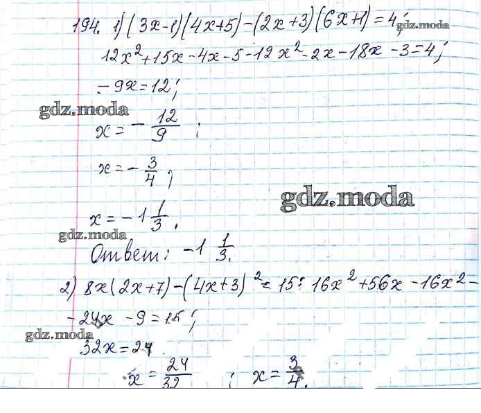 ОТВЕТ на задание № 194 Учебник по Алгебре 8 класс Мерзляк Алгоритм успеха