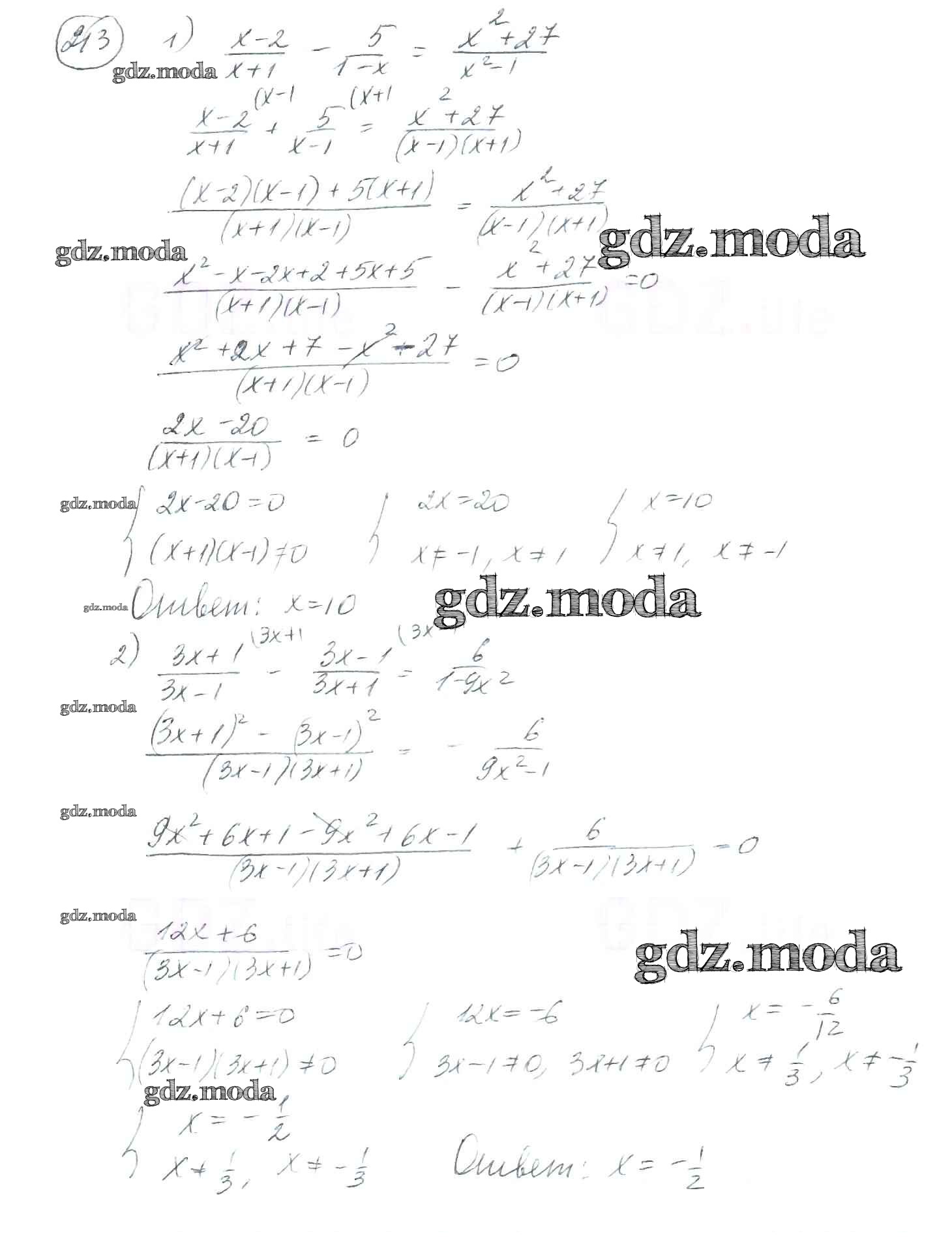 ОТВЕТ на задание № 213 Учебник по Алгебре 8 класс Мерзляк Алгоритм успеха