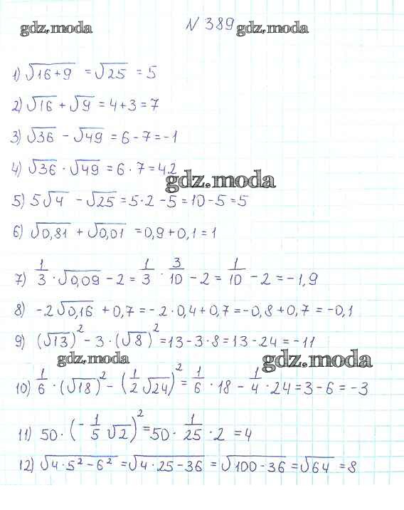 ОТВЕТ на задание № 389 Учебник по Алгебре 8 класс Мерзляк Алгоритм успеха