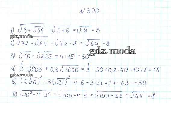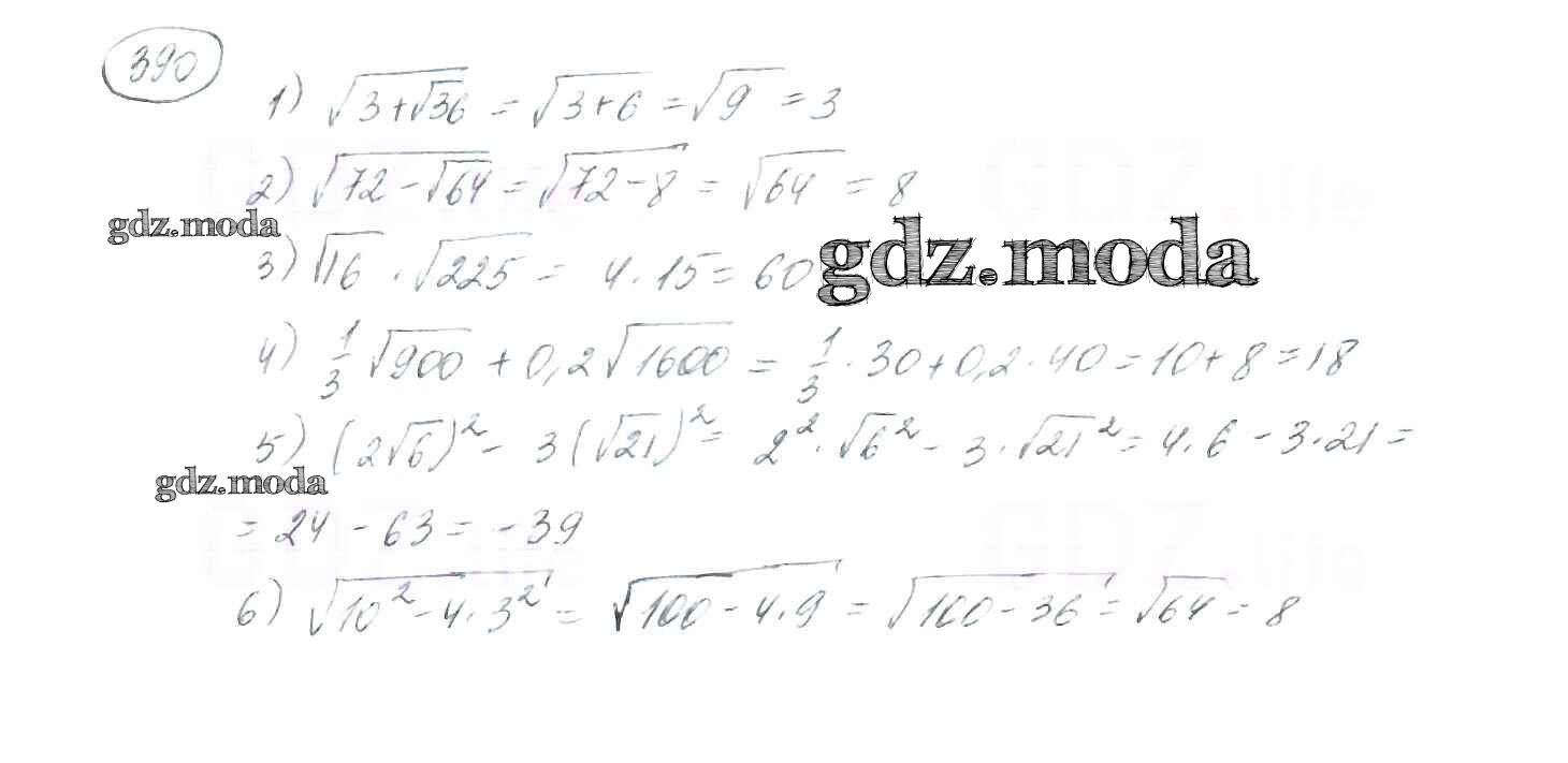 ОТВЕТ на задание № 390 Учебник по Алгебре 8 класс Мерзляк Алгоритм успеха