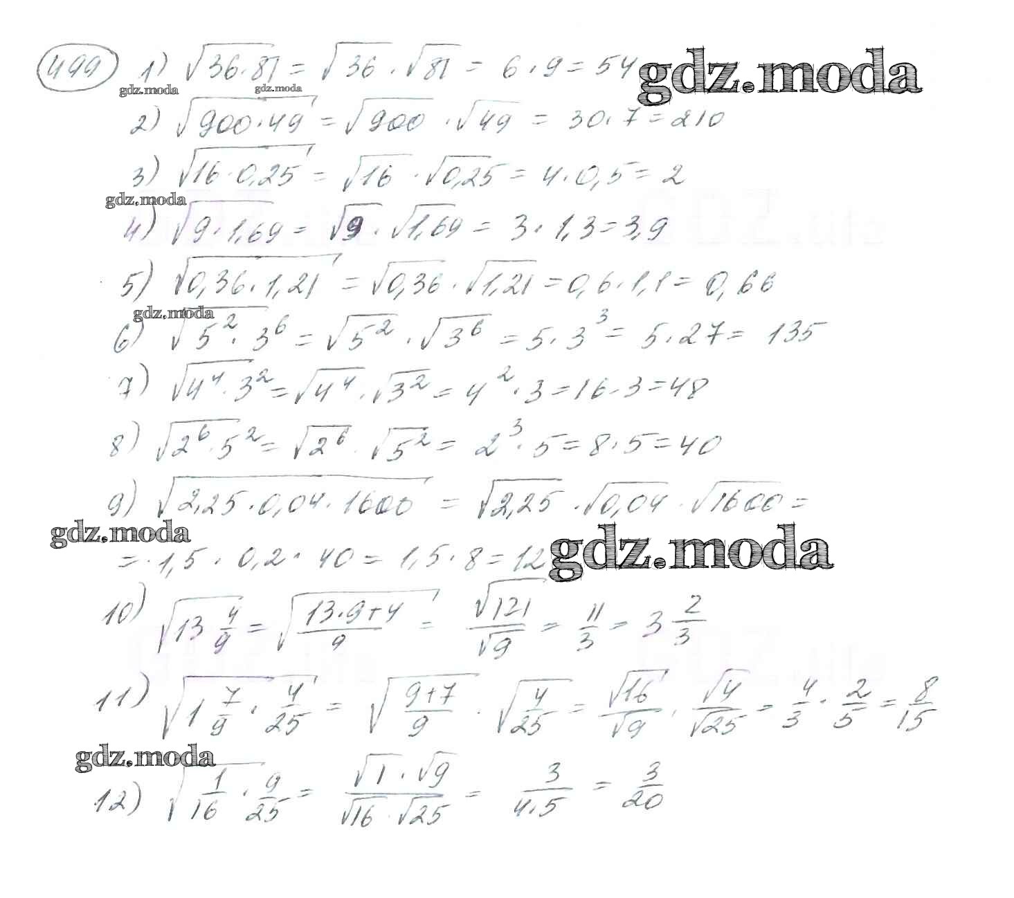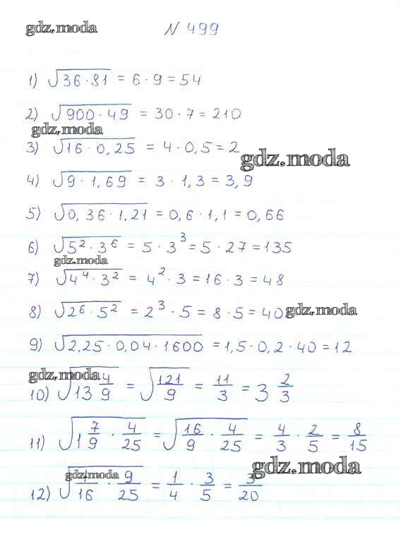 ОТВЕТ на задание № 499 Учебник по Алгебре 8 класс Мерзляк Алгоритм успеха