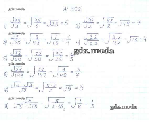 ОТВЕТ на задание № 502 Учебник по Алгебре 8 класс Мерзляк Алгоритм успеха