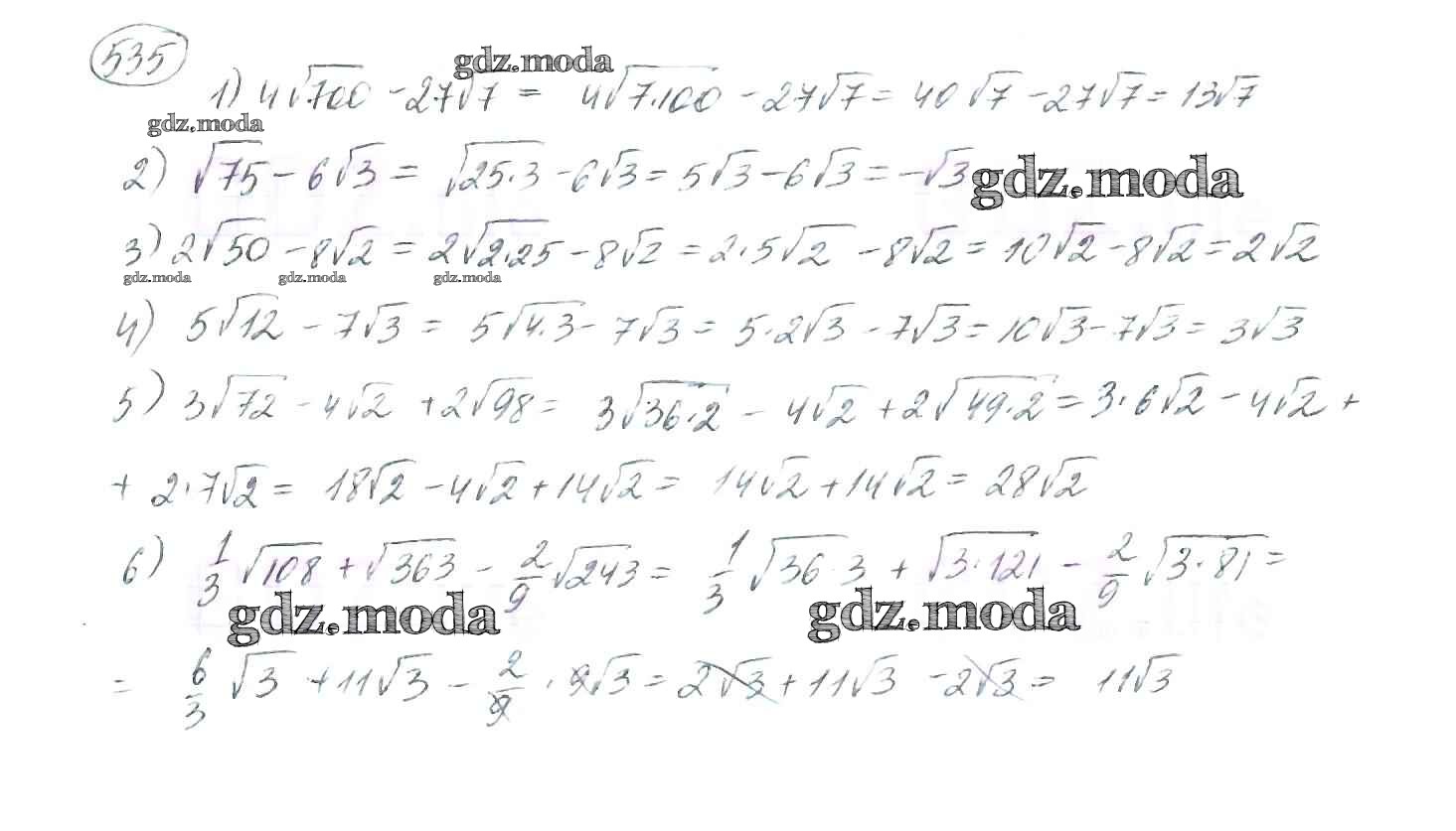 ОТВЕТ на задание № 535 Учебник по Алгебре 8 класс Мерзляк Алгоритм успеха