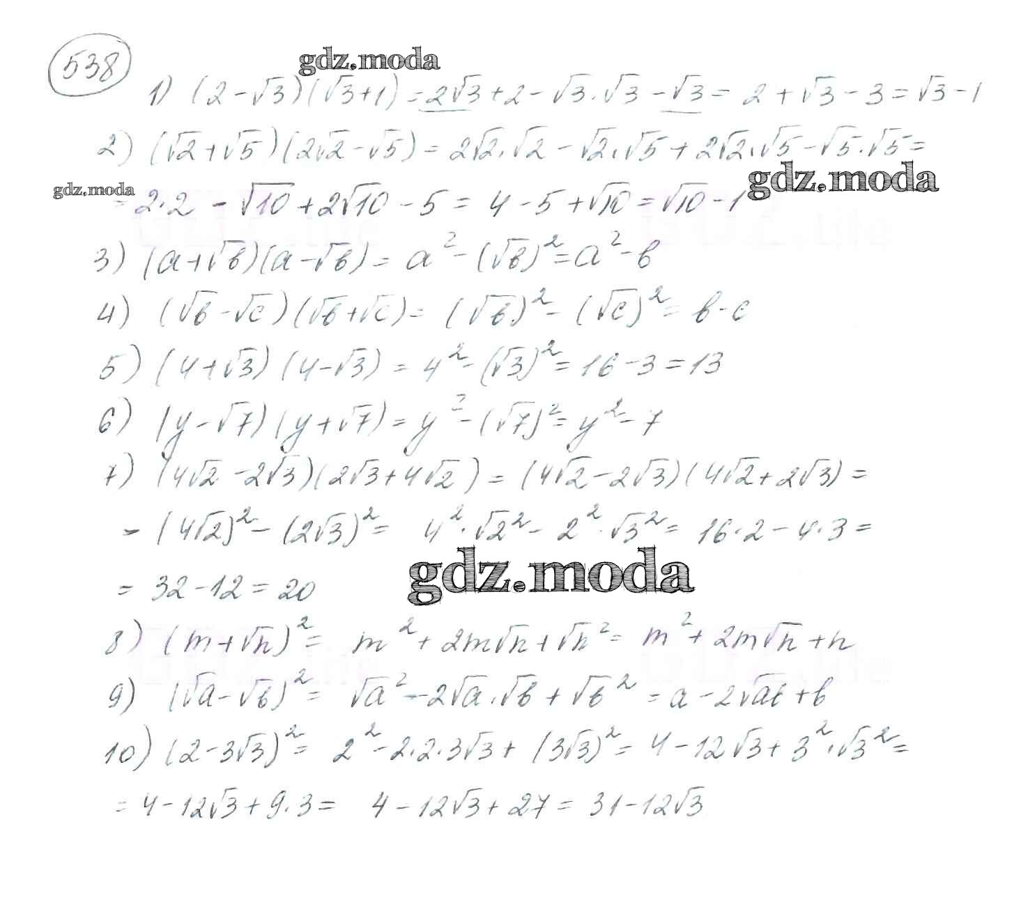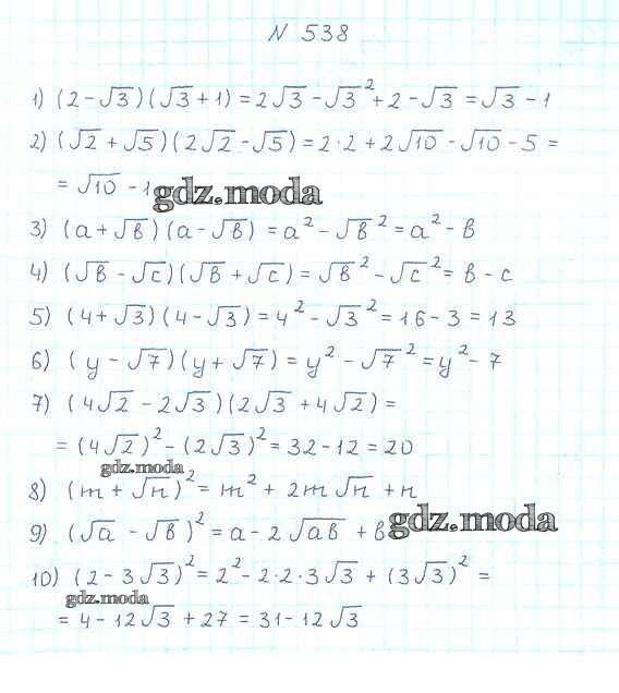 ОТВЕТ на задание № 538 Учебник по Алгебре 8 класс Мерзляк Алгоритм успеха