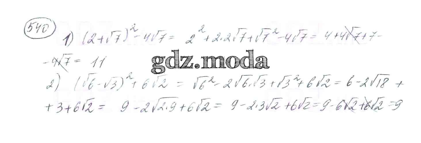 ОТВЕТ на задание № 540 Учебник по Алгебре 8 класс Мерзляк Алгоритм успеха