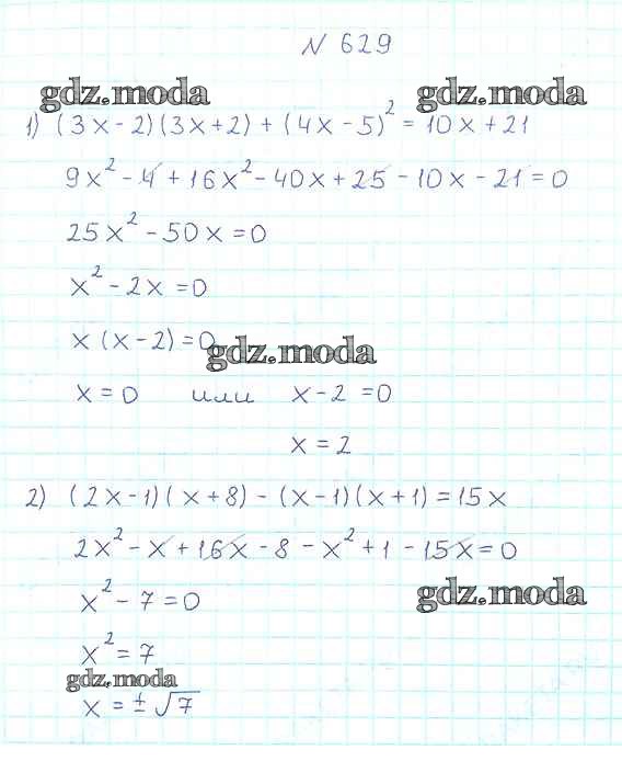 ОТВЕТ на задание № 629 Учебник по Алгебре 8 класс Мерзляк Алгоритм успеха