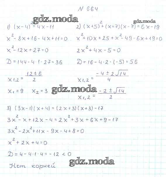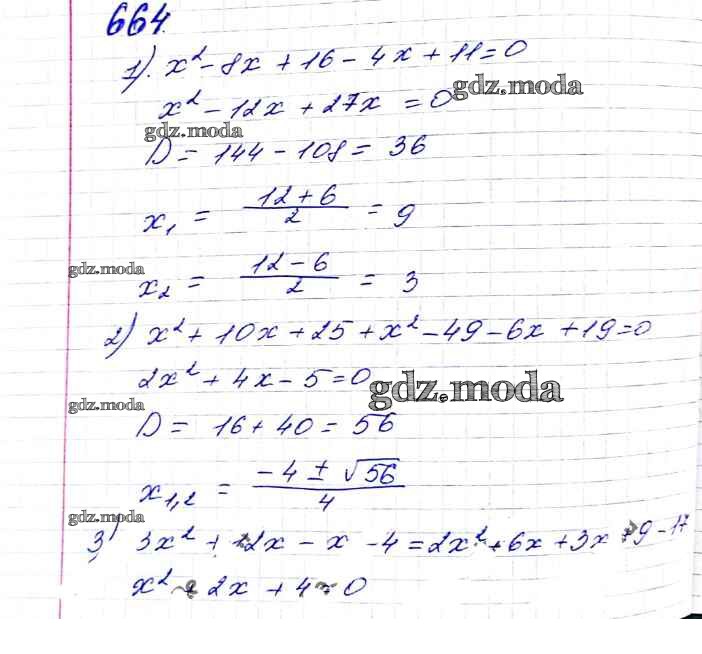 ОТВЕТ на задание № 664 Учебник по Алгебре 8 класс Мерзляк Алгоритм успеха