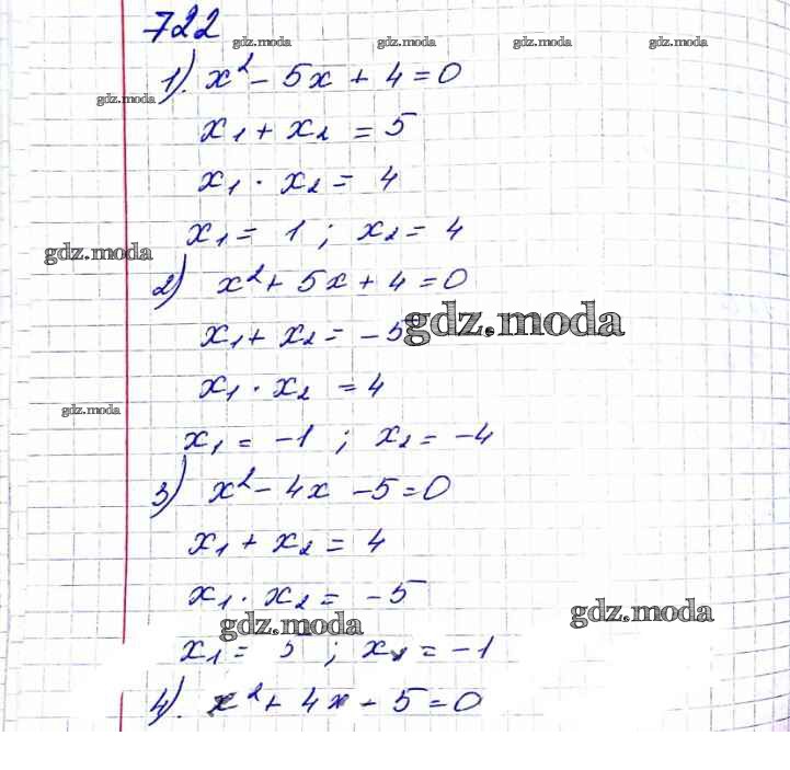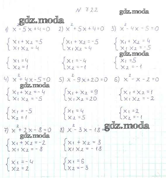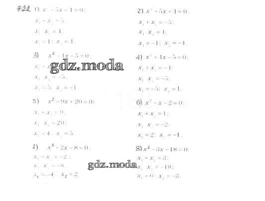 ОТВЕТ на задание № 722 Учебник по Алгебре 8 класс Мерзляк Алгоритм успеха