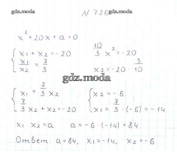 ОТВЕТ на задание № 726 Учебник по Алгебре 8 класс Мерзляк Алгоритм успеха